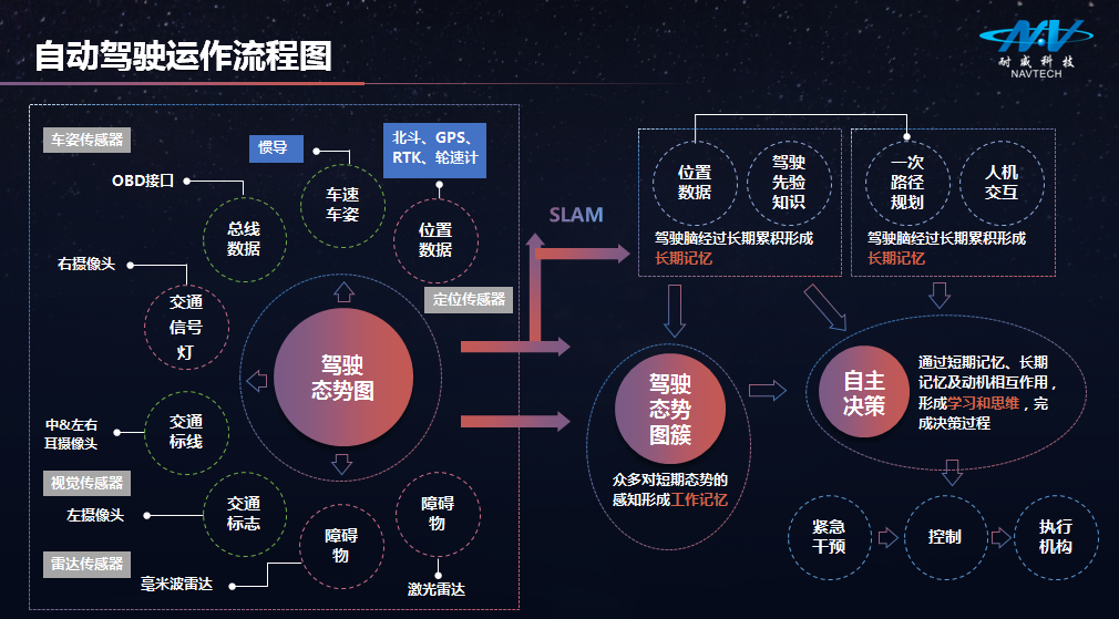 关于北斗+惯导在自动驾驶中的作用,章红平先生详细介绍了“自动驾驶运作流程图”、“北斗精密定位服务系统”、“惯性导航系统”、“GNSS+INS组合导航优势”、“自动驾驶传感需求”、“自动驾驶高精度定位定姿需求”、“自动驾驶决策需求”、“自动驾驶控制需求”、“自动驾驶导航需求”及“高精度众包地图的基石”。
